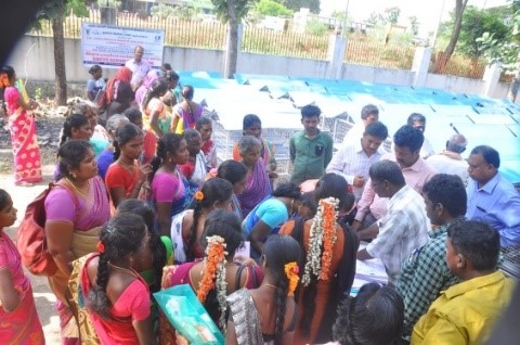 One day training programme on “Scientific Aquaculture Practices and Backyard Poultry Farming” was organized at Maduranthakam, Tamil Nadu on 11 February 2020. About 100 women beneficiaries selected from different Self-Help Groups participated for backyard poultry farming and 13 beneficiaries for grow-out culture of carps. The beneficiaries were provided with backyard poultry cages, 5000 nos. of day old desi poultry chicks for rearing in cages and starter poultry feed. Grow out technology of rohu with necessary inputs and scientific guidance of ICAR-CIFA was demonstrated at Chitamur, Maduranthakam and Lathur Blocks of Kanchipuram district. Advanced fingerlings of rohu (about 30,000 nos) were stocked in ponds of SCSP beneficiaries.